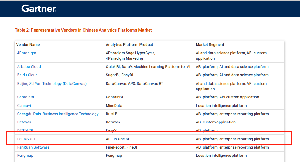 專業之選 | 億信華辰入選Gartner中國分析平臺代表廠商
