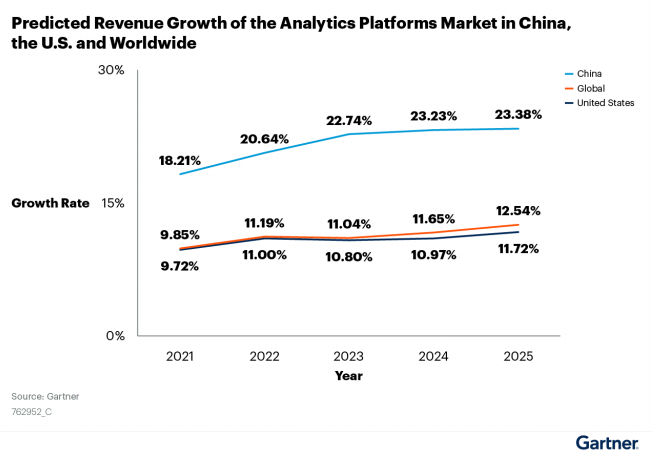 近日,國際權威研究與咨詢機構Gartner發布2022年《中國分析平臺市場指南》(《Market Guide for Analytics Platforms, China》)。億信華辰入選“代表性廠商”,億信ABI作為代表性產品上榜。 01、藍海已現中國分析平臺市場高速增長可期 此次發布的《中國分析平臺市場指南》中,Gartner從市場趨勢、競爭格局、產品方向等多個維度對中國的數據分析市場做了分析和預測。 報告指出:中國分析平臺市場規模將持續增長。在數字化轉型趨勢、自助服務、增強分析以及商業智能解決方案的推動下,到2023年,整體分析采用率將從35%增加到50%。預計到2025年,中國分析平臺市場規模將達到16億美元,市場增長率將由18.21%提升到23.38%,是全球(12.54%)和美國(11.72%)市場預期增長的兩倍左右。 在《指南》中,Gartner對數據分析平臺的能力做了進一步的定義,包括了:企業報告平臺、ABI平臺、AI和數據科學平臺、ABI定制化應用和位置智能平臺等方向。而在這些細分市場中,增長最快的領域是ABI平臺、AI和數據科學平臺,預計復合年增長率分別為36.23%和27.72%。 《指南》指出,傳統的企業報告解決方案通常依賴IT團隊,從成本投入和效率上都難以滿足當前企業建設的需求。隨著低代碼/無代碼和人工智能/機器學習功能等先進技術的發展以及應用,自助式的分析平臺將更受歡迎,它的應用能讓企業從業務導向&特定領域的深度洞察中受益。 02、匠心打造億信ABI立于行業發展潮頭 億信ABI是億信華辰歷經十多年匠心打造的國產化BI工具,是一站式智能數據處理分析平臺,精準契合中國分析平臺市場發展需求與趨勢。 它打通從數據接入、到數據建模與處理、再到數據分析與挖掘、數據可視化整個數據應用全鏈路,可滿足企業經營中各類復雜的分析需求,實現多維度的數據分析應用,讓數據發揮價值,驅動業務運營,幫助企業實現高效數字化轉型。 億信ABI覆蓋數據分析完整流程 作為國內首家有ABI聯合思維并在產品名中使用“ABI”的公司,我們用專業能力定義行業標準,并持續打造行業標桿客戶,引領行業發展新風向,更賦予了適用于中國本地化數字化轉型的“3A”指導策略,即: AII in BI:一站式應用型BI。產品功能全面,打通數據應用全流程,實現數據填報、處理、分析一體化。一個產品平臺即可為政企用戶提供從數據準備,ETL數據處理、數據建模、數據可視化、數據分析、數據填報、移動應用等一系列功能。 Analytics:增強分析型BI。全方位強化分析能力,提供挖掘預測分析、大數據量分析。同時支持鉆取、領導駕駛艙3D可視化、大屏分析、報告分析、等多種分析方式。用戶不需要太多專業的數據處理知識、統計學知識、算法知識就可以低門檻的獲得更多、更全、更準確、更深入的數據分析結果,洞察數據關聯,實現數據挖掘,輔助決策支持。 AI+BI:智能化的BI。以人工智能分析為引領,為企業運營管理所有環節提供分析洞察。作為國內老牌BI廠商,億信華辰潛心專研,將AI技術融入BI產品,開創性提出“智問”,“智讀”、“智算”等功能,從而實現“BI產品智能化的服務,更智能的BI產品應用”,引領國內BI工具的方向與趨勢。 03、專業之選助力政企釋放數據價值 億信華辰作為中國專業的商業智能BI和數據治理軟件提供商,一直致力于為政企用戶提供從數據采集、存儲、治理、分析到智能應用的智能數據全生命周期管理方案,幫助企業實現數據驅動、數據智能,已積累了11000+家用戶的服務和客戶成功經驗,為客戶提供數據分析平臺、數據治理系統搭建等專業的產品咨詢、實施和技術支持服務。 億信華辰始終堅持自主研發和國產化路線,積極推動產品與基礎軟硬件的兼容適配。旗下產品億信ABI已經完成與國內主流芯片、操作系統、數據庫、中間件等上百家產品的適配工作,完全兼容、性能穩定是共同的結論。  未來,億信華辰將繼續在智能數據領域進行探索和實踐,以創新為驅動力,不斷為用戶提供更好用的軟件產品和全面深入的優質服務,推動企業和政府的數字化智能化轉型。