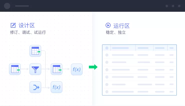 為保證運(yùn)行環(huán)境的穩(wěn)定可靠,提供了設(shè)計(jì)區(qū)與運(yùn)行區(qū)隔離的機(jī)制,所有作業(yè)的修訂和更改通過(guò)在設(shè)計(jì)區(qū)完成調(diào)試和試運(yùn)行后,通過(guò)發(fā)布機(jī)制,發(fā)布到穩(wěn)定的運(yùn)行環(huán)境,保證開(kāi)發(fā)和運(yùn)行兩不耽誤。